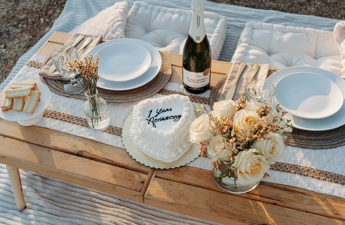 We offer a range of picnic packages, from proposals, cozy couples' date nights to family-friendly options, all fully customizable to suit your needs. We provide comfortable seating options such as blankets, cushions, and low tables. We also offer a variety of decor and styling options to make your picnic experience special.